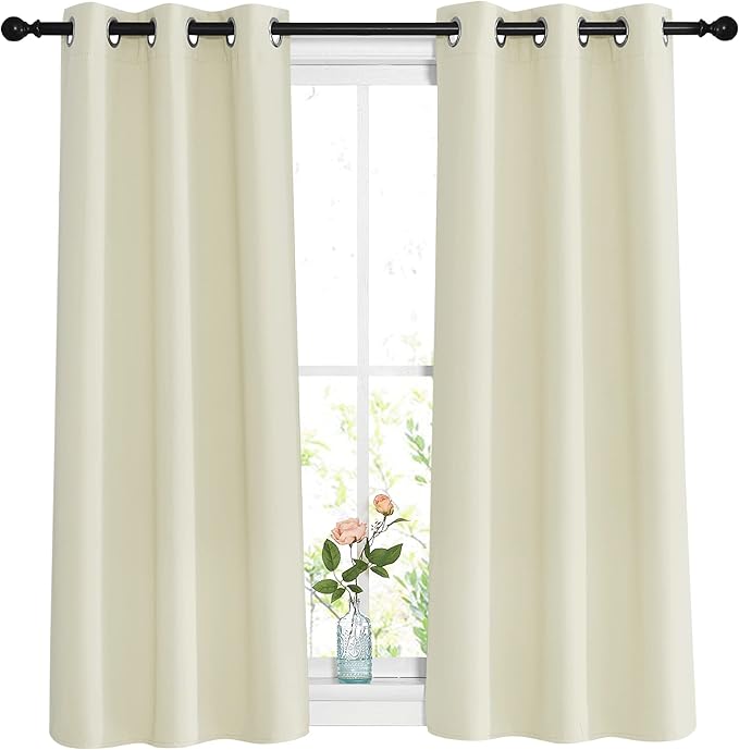 NICETOWN Room Darkening Curtains and Drapes 54 inch Long - Grommet Energy Saving Thermal Insulated Light Blocking Window Treatments for Bedroom (Beige, 1 Pair, W37 x L54)