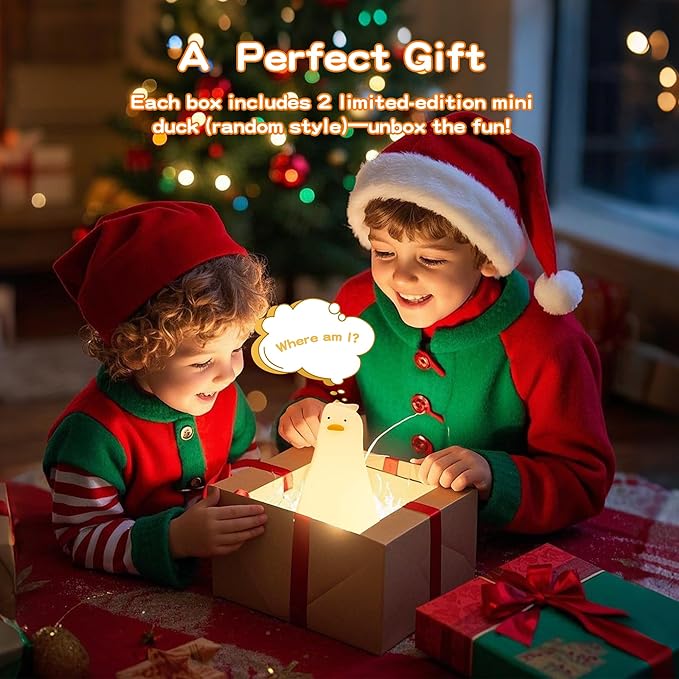 Lying Flat Duck Silicone Night Light, Cute Ducky Lamp with Gifts,Squishy Animal Nursery Nightlight, Dimmable/Rechargeable Portable Bedside Touch Lamp for Breastfeeding,Baby Adults Kids Room Decor