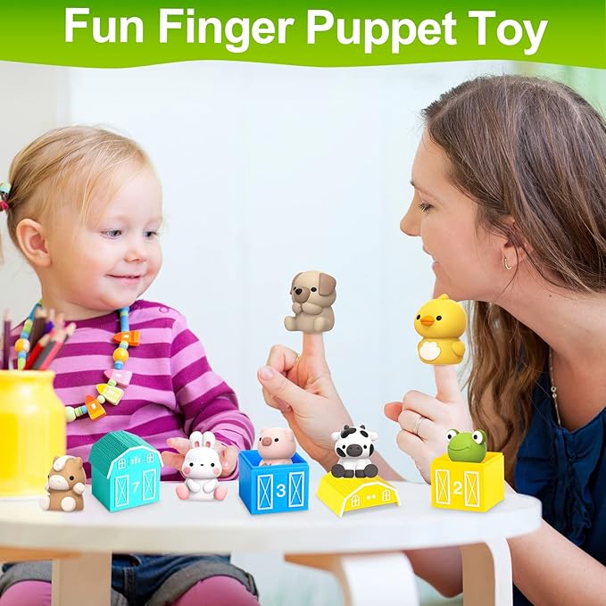 - Package Content:Our toddler learning toy set includes 10 barns in different colors and 10 animal puppets shaped in rabbit, sheep, pig, cat, dog, etc.Cute animals hiding in the barn will be popular with toddlers 1-3 year old, which is great for parents to imitate animal sounds with finger puppets during the interaction game, helping your baby increase more knowledge about animal world.