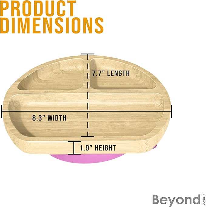 - EASILY FITS IN ANY HIGHCHAIR: Ergonomically designed for children at least four months of age, our baby bamboo plate has a convenient size that fits all brands of high chair trays. It is intended to encourage toddler self-feeding without (so much of) the mess.