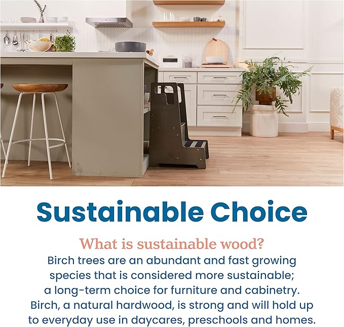 - Two-Step Stool: Countertop-height step stool designed for little helpers to grow confidence as they cook, wash hands, and brush teeth in a home, preschool, or daycare