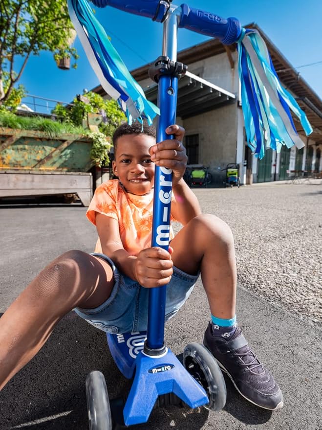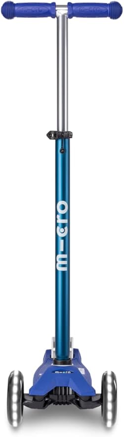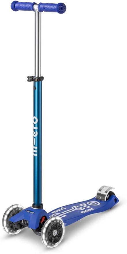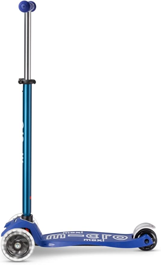 - Micro's 3-wheeled Maxi Deluxe LED scooter, with a lean-to-steer design, offers a stable ride that supports children as they curve and carve the sidewalk.. Features two front LED motion-activated light-up wheels. (No batteries required!)