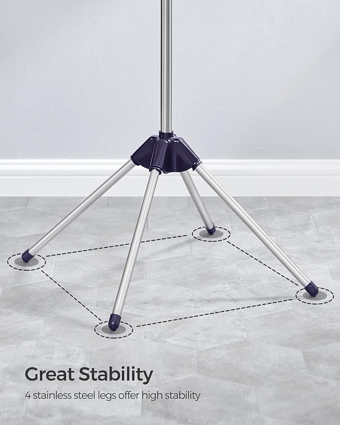 SONGMICS Clothes Drying Rack, 59-Inch High Folding Laundry Drying Rack with 3 Rotatable Arms for Hangers, 4 Legs, Stainless Steel, for 27 Pieces of Clothes, Blue and Silver ULLR510Q01
