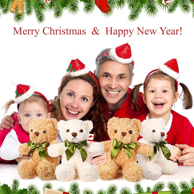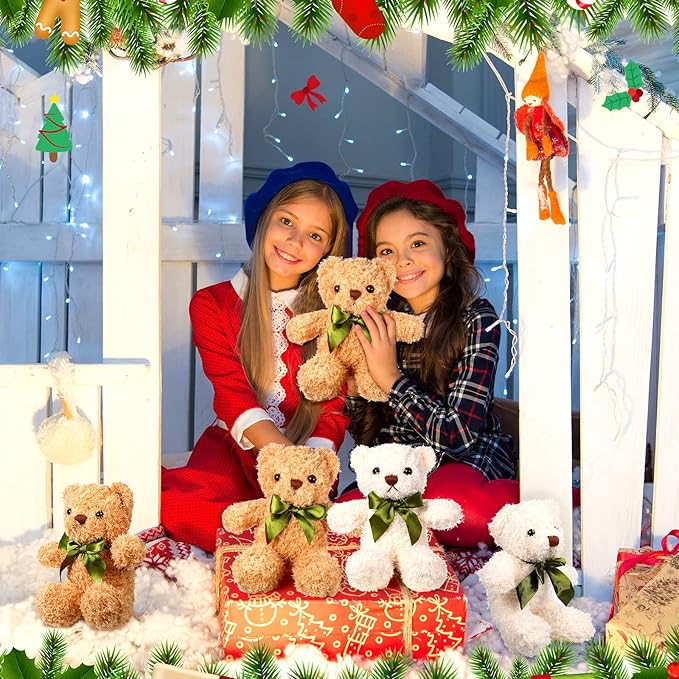 HyDren 12 Pack Bear Stuffed Animals 10 Inch Operation Christmas Bulk Items Small Bear Party Favors Plush Toys for Baby Shower Centerpiece Christmas Birthday Gifts(White, Light Brown)