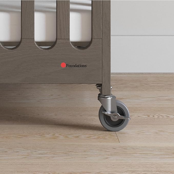 Foundations Boutique Folding Mini Baby Crib - Compact, Portable, Wooden Hotel Crib, Foldable Compact Cribs for Baby & Toddlers - Includes 3" Foam Mattress - Dapper Gray