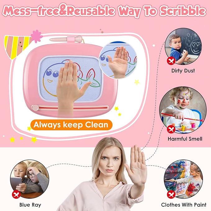 - 🎀1 2 Year Old Girl Gifts: Not only a nice holiday gift, birthday gift, Christmas gift, Valentines Day gifts, visit gift for little girls, but a relatively inexpensive way to give your child endless hours of artistic and educational opportunities. Use magnetic drawing boards for math, number recognition, learning shapes, even does their homework.