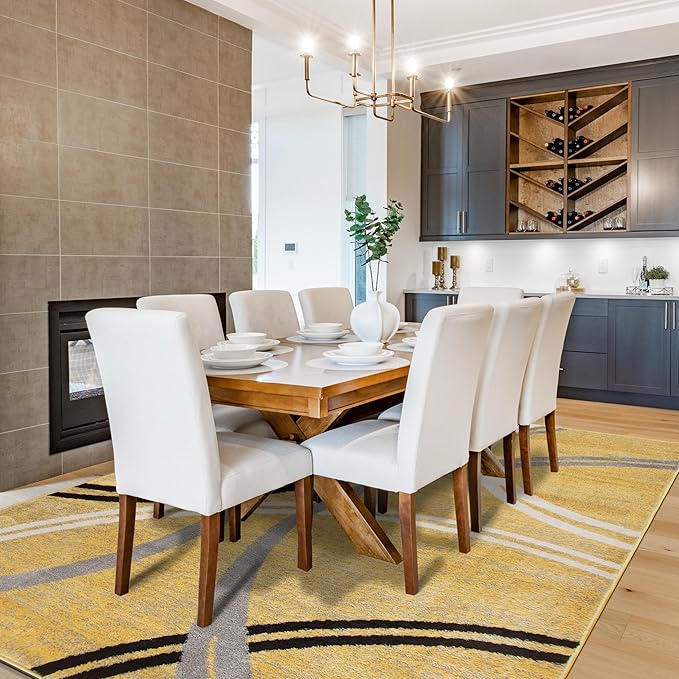 - Dynamic Wavy Circles Design: The rug boasts an artistic pattern with fluid wavy circles, available in blue, brown, gray, red, black, and yellow to complement any room's palette.