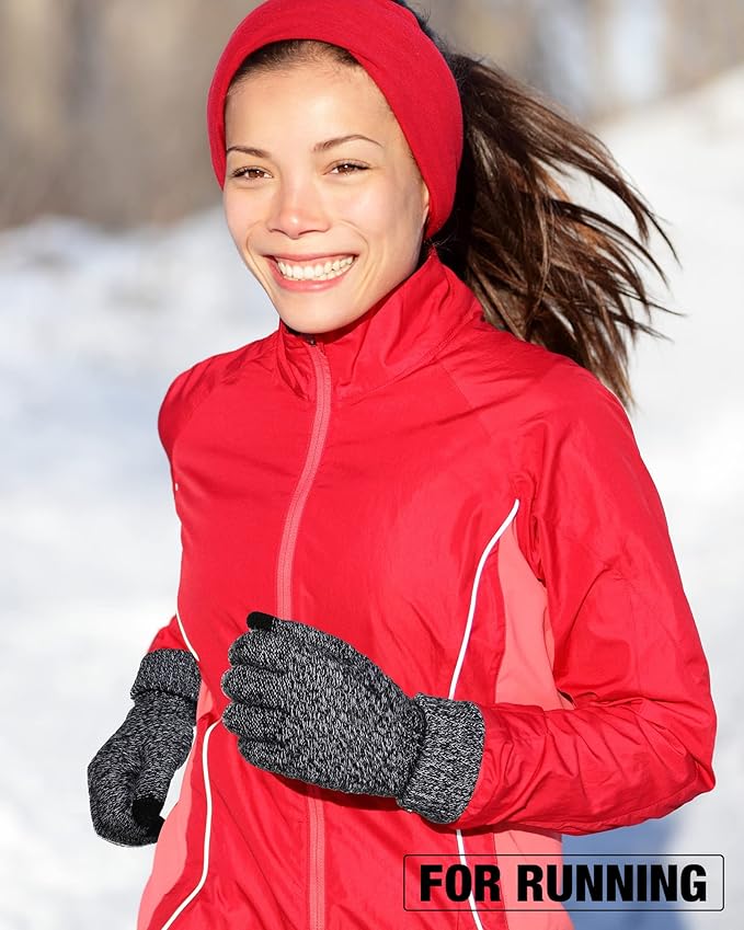 Geyoga 2 Pairs Women's Winter Touch Screen Gloves Soft Warm Fleece Lined Knit Elastic Cuff Winter Texting Gloves