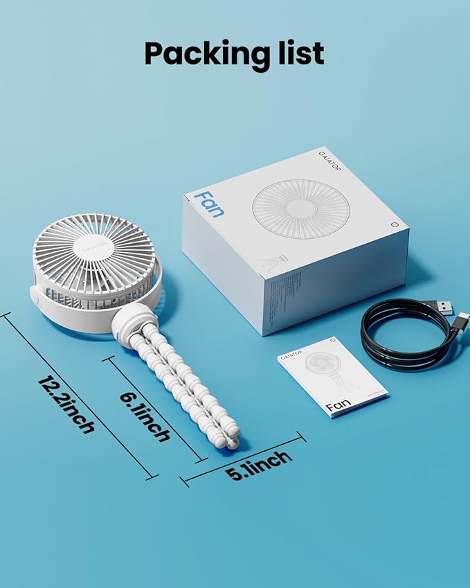 Gaiatop Mini Portable Stroller Fan, Battery Operated Small Clip on, Detachable 3 Speed Rechargeable, 360° Rotate Flexible Tripod Better Cooling for Car Seat Crib Treadmill Travel White
