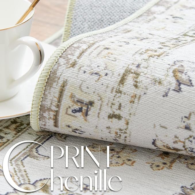 jinchan Hallway Runner Rug 3x10 Machine Washable Runner Rug Taupe Vintage Floral Design Non-Slip Low Pile Ultra-Thin for Kitchen Laundry Room Bedroom Farmhouse (3‘x10',Taupe)