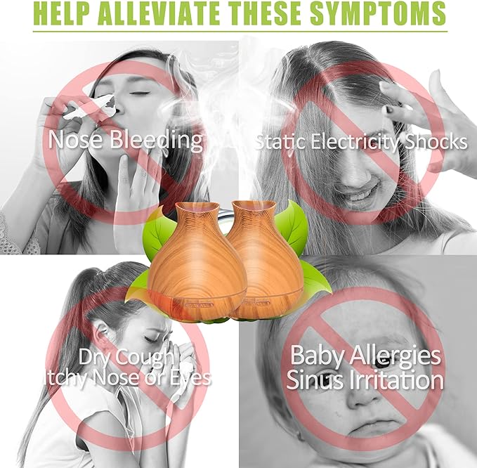 - Good Choice As Gift: This difusor is made from high-quality materials and features a sleek design ,a faux wood look that will complement any decor. It using advanced ultrasonic diffusion technology to atomize essential oils to help you breathe better. Especially during dry air, allergy season, and when you are sick, it helps you relax and sleep better, relieves allergies, and reduces the discomfort of dry skin. It's worth getting one for your family and friends.