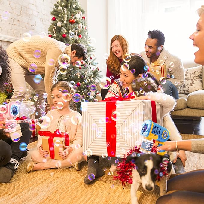 - ❤Must Have Bubble Guns for Party:You just put in batteries 4AA, screw the bubble bottles that come with it on to the gun and you're ready to go. Perfect for Valentines Day,Prom, Activity, Ceremony, Carnival, Birthday Party, Party Favors, Halloween, Weddings, Easter Basket Stuffers, Christmas, Beach, Pack, Backyard Party Indoor and outdoor. The ideal toddler gifts toys for boys and girls ages 3, 4, 5, 6, 7, 8...