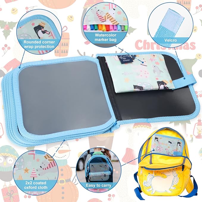 - 🎨Kid's Road Trip Essentials--Kids Erasable Graffiti Book has sticky buttons on the outside to keep it in place and a pens pocket on the inside for 12 watercolor pens. Even in cars, planes and other means of transportation, kids can draw as much as they want.