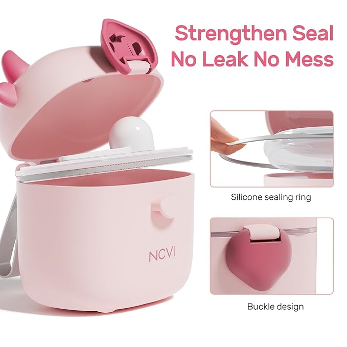 - 【Milk Powder Dispenser】The NCVI baby formula container is made of high food-grade PP plastic that is BPA-free, environmentally friendly, suitable for moist- heat and freezer safe as well. This milk dispenser for baby formula has two cute horns that are made from TPE soft material, which is round, soft and safe