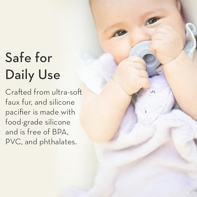 - SAFETY TESTED: Our lovey is made from ultra-soft polyester faux fur and the 100% food-grade silicone pacifier is BPA-free; the Bubbi Buddy is CPSIA compliant, the highest standard of safety testing for children’s products in the US