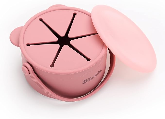 - SAFE FOR BABY: The Dilovely snack cups for baby is made out of food grade silicone, free from BPA, BPS, PVC, lead & phthalates. This kids snack container thoroughly tested by a third-party lab. Safe baby essential for self-feeding.