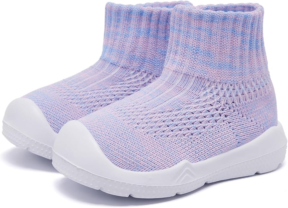 - Friendly Sock-like Upper: Sock-like stretchy textile construction upper hugs the foot to keep them comfortable and flexible when babies are on the move. Baby sock shoes made of soft fabric knit are also friendly to the skin, healthy, and very safe for infant babies.