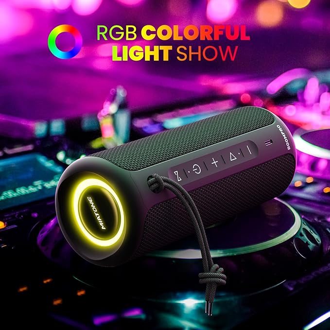 - [MUSIC WITH DYNAMIC COLOR LIGHTS] MIATONE portable bluetooth speakers features built-in color RGB lights that create a vibrant and immersive audio experience. Whether you're hosting a party or just relaxing at home, the color RGB lights will add an extra dimension to your listening experience.