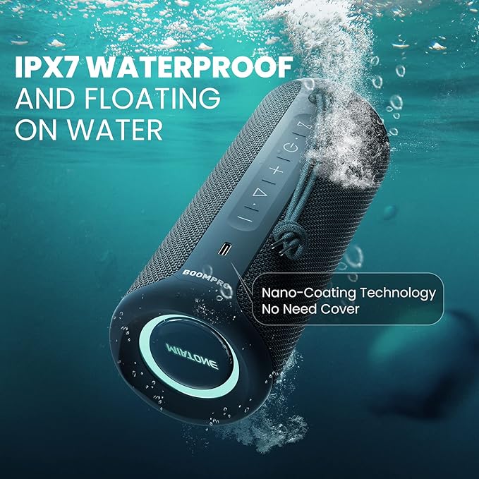 - [IPX7 WATERPROOF WIRELESS SPEAKER] Take your music anywhere with confidence thanks to our MIATONE bluetooth speakers portable wireless's IPX7 waterproof rating. This rugged and Great Performing speaker can withstand rain, splashes, and even brief submersion in water, making it the perfect companion for outdoor adventures, beach and pool parties.
