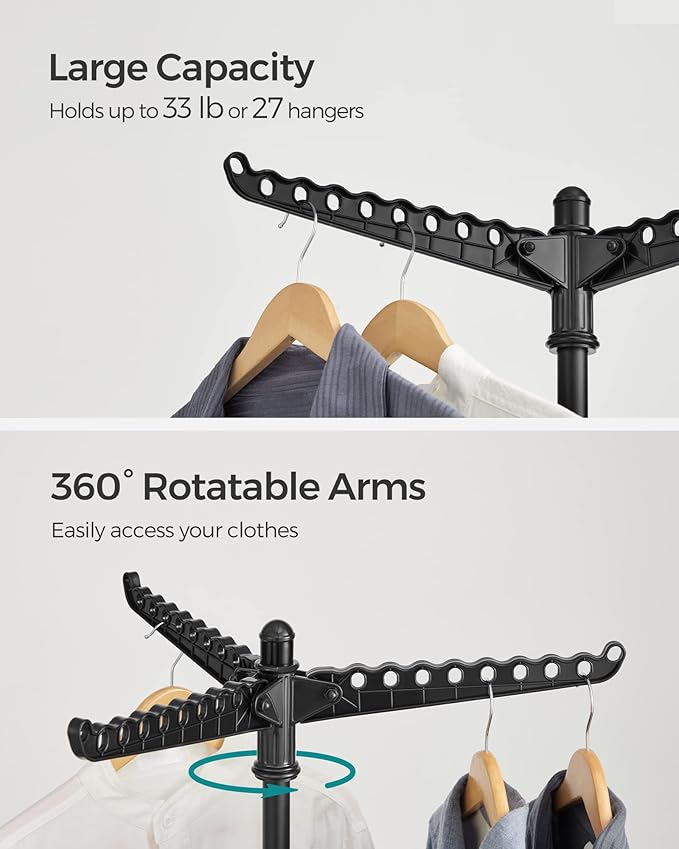 - [Large Capacity] Designed with holes on the arms for holding hangers in place, this laundry rack can hold up to 27 pieces of clothes and other accessories; total max. static load capacity: 33 lb
