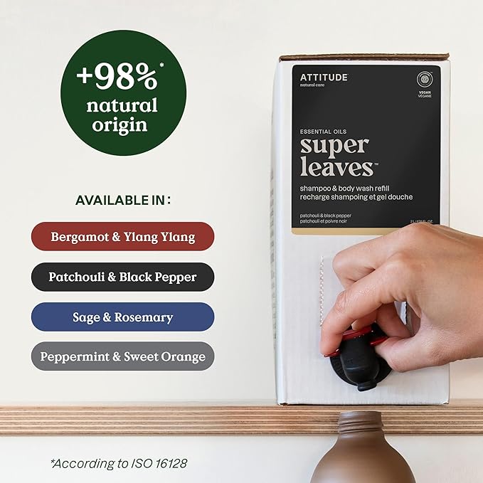 ATTITUDE 2-in-1 Body Wash and Hair Shampoo, EWG Verified Shower Gel, Dermatologically Tested, Made with Naturally Derived Ingredients, Vegan Personal Care, Bergamot and Ylang Ylang, 67.6 Fl Oz