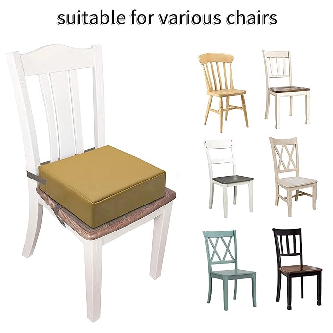 - SAFETY & NON-SLIP: Booster seat has two safety belts on the cushion, which can be fixed on the back and bottom of the chair, and there is anti-slip silicone at the bottom of the cushion to ensure that the cushion will not slip off. Double protection for children's safety when eating