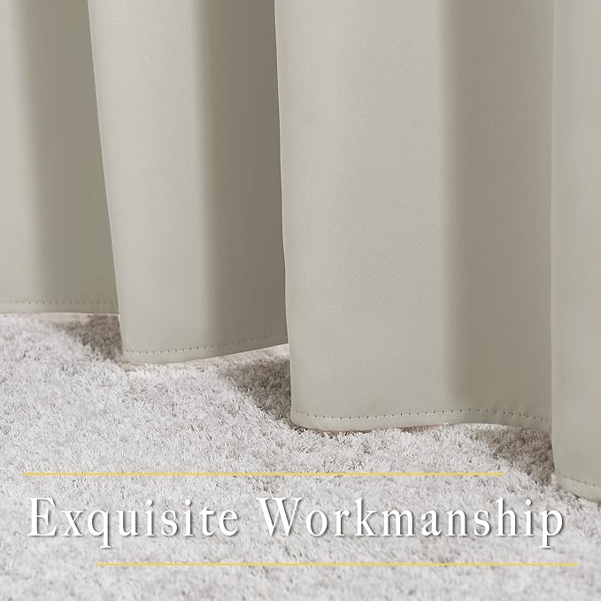 - Amazing Material: Super heavy and soft Blackout Curtain Panels are very upmarket. Besides, 85%-99% light blocking, thermal insulated, soundproof, and energy-efficient. Thread trimmed and wrinkle-free, both sides are the same color.