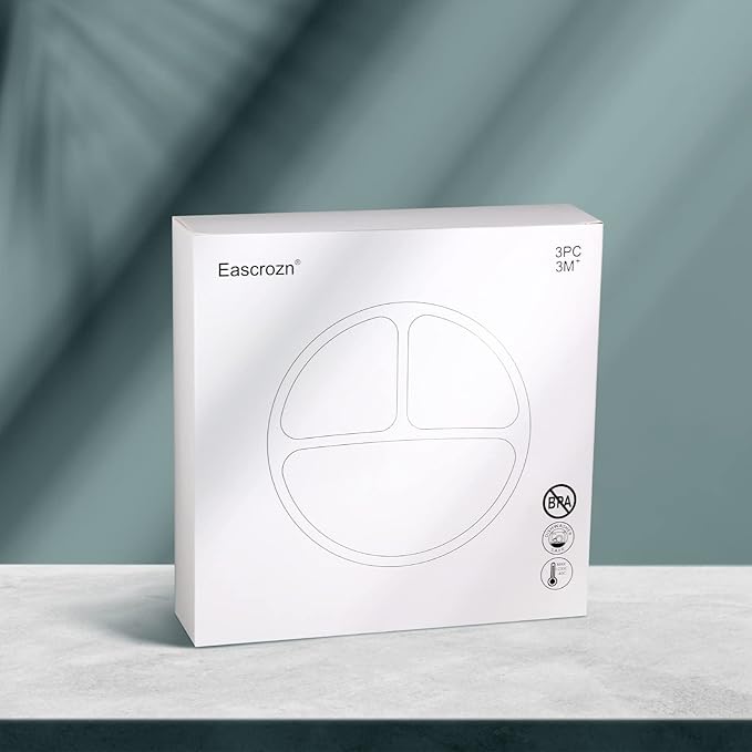 Toddler Plates 3 Pack, Divided Suction Plates for Baby, 100% Food Grade Silicone Baby Plates, Non-Slip, Baby Led Weaning Supplies, Microwave & Dishwasher Safe
