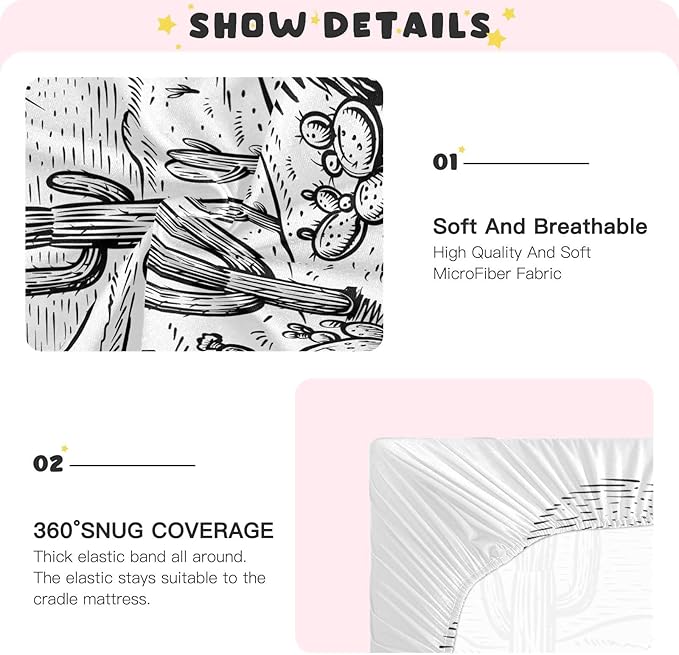 - Excellent Quality -- The fabrics of these crib sheets are carefully selected to be soft, comfortable and breathable, skin-friendly. Made of 95% polyester + 5% spandex, these crib sheets are fade resistant, machine washable and easy to care for.