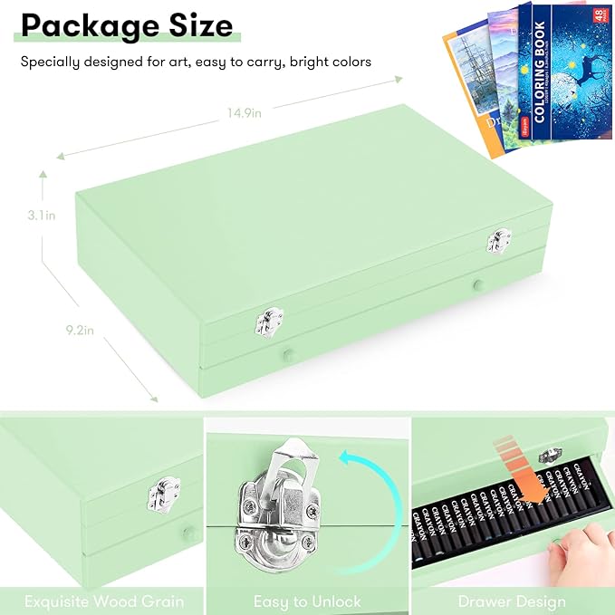 - 【Premium Quality, Deluxe Art Kit】The Deluxe art case has everything you need to get started creating in a compact wooden case! You can begin drawing, coloring and painting as soon as you open the box. Specially designed with 2 big sketchbooks, 1 coloring book, 1 Gift Box. Great art set for any level of artist. This art case makes a great Gift for adults and kids, girls and boys, they are going to have so much fun!