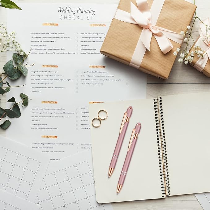 8 Pieces Ballpoint Pen with Stylus Tip Black Ink 2 in 1 Stylus Metal 1.0 mm Medium Point Smooth Pen Rainbow Colorful Rubberized Ballpoint for Touch Screen Tablet(Rose Gold)