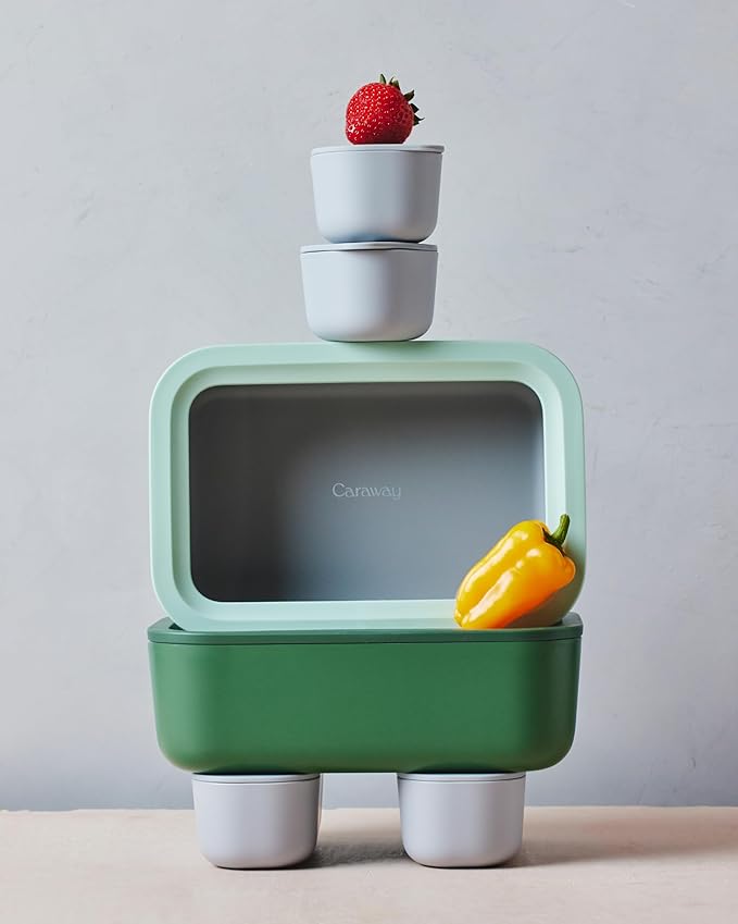 - CREATE YOUR OWN BENTO BOX: Add Caraway’s Dot & Dash Containers to build an on-the-go bento box. They fit neatly in one of our 6.6 cup glass food containers for a lunch that stays fresh and seals tight