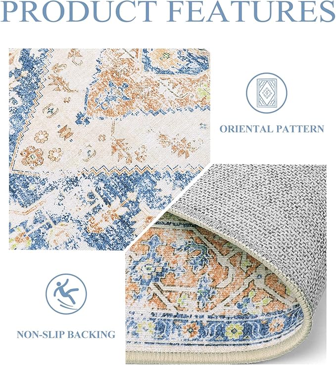 - Oriental Design: The indoor rug is made of comforable chenille material, which is lightweight, soft and stain resistant in daily use. Classic colors with elements of medallion and borders make your room vintage and vibrant