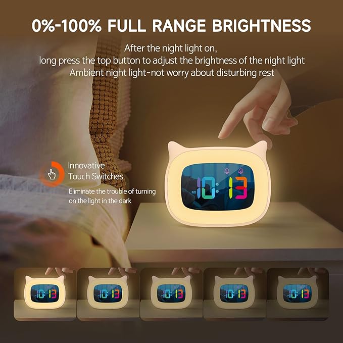 - 【Ideal Present for Kids & Free Risk】Comprised of safe ABS, the lovely electric clock is certified by Fcc and RoHs. One year warranty. Cute design and soft lighting offer your kids a gentle companion, which can help them learn to sleep alone. It is the first choice for children's day and birthday presents, cute clocks are good for room decor.
