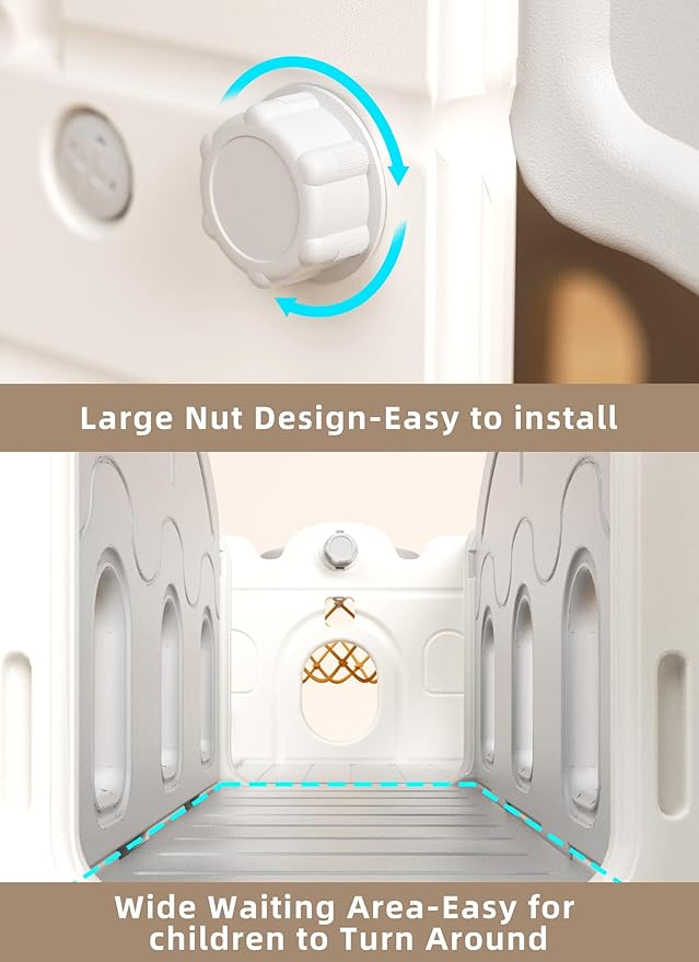 - Solid and Secure Construction: With a unique castle-themed design and sturdy heavy-duty panels, this playset ensures a safe play environment. The integrated staircase with handrails provides a safe and easy ascent and descent, while the non-slip pedals and rounded design enhance stability and security.