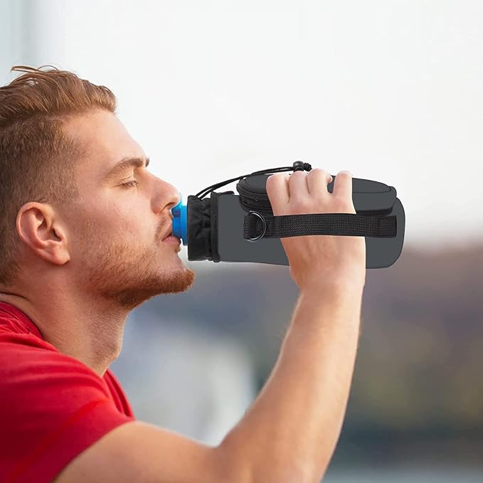 • icolor Sports Wide Mouth Bottle Accessories for Hiking Travelling Camping: Have Adjustable Padded Shoulder and Handle Strap. It is with 2 zipper Pockets too,The small zipper pocket is for cash and card, the large zipper pocket is for smartphone, keys & other.