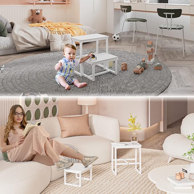 - 【3 in 1&well designed】iTsst step stool can change three forms.①Solid 2-step stool ② Small stool can be stored underneath the high stool ③ Can be split into two stools for separate use.