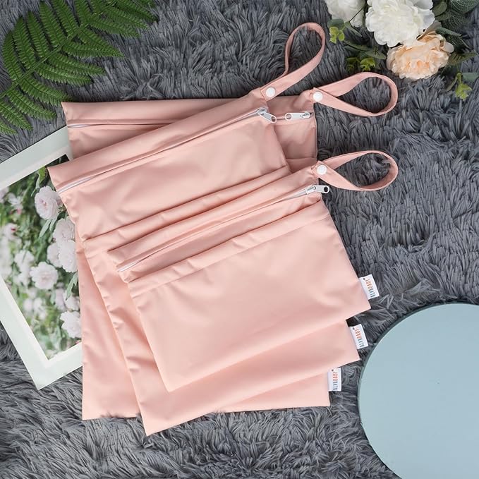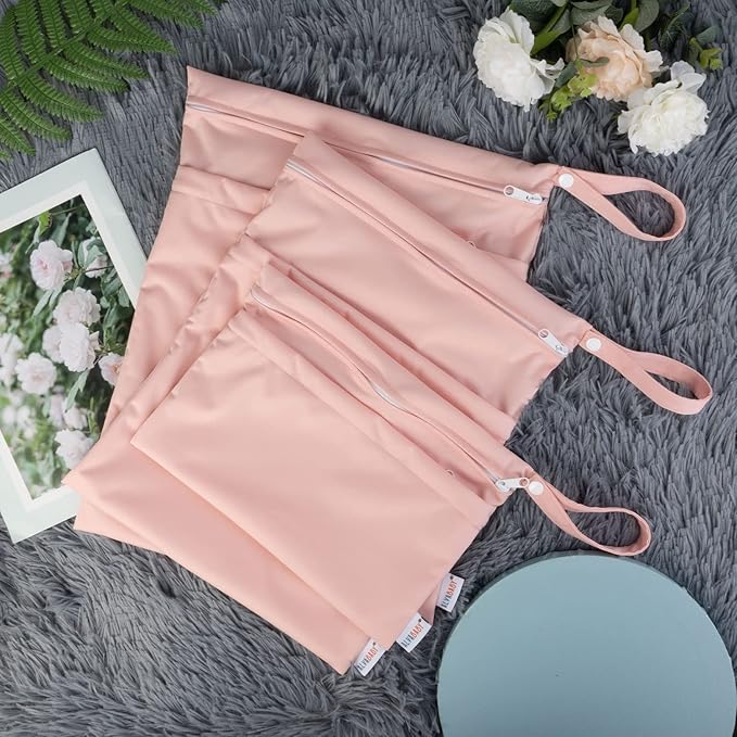 ALVABABY 3pcs Baby Cloth Diaper Wet/Dry Bags|Waterproof Reusable with Two Pockets|Travel, Beach, Pool, Daycare, Soiled Baby Items,Yoga,Gym Bag for Swimsuits or Wet Clothes (3 pcs in SML, Pink) 3L-B19