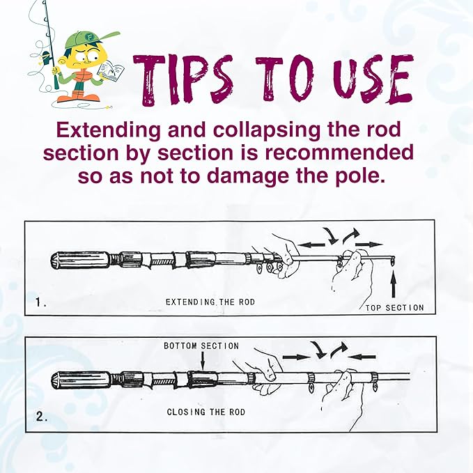 - Convenient Portability: Our collapsible fishing rod makes it easy to transport and store, and you can pack all your fishing accessories into one fishing bag, and you can take them wherever you want, and the fishing bag also provides added protection while on the go. Tips: Extending and collapsing the rod section by section is recommended so as not to damage the pole
