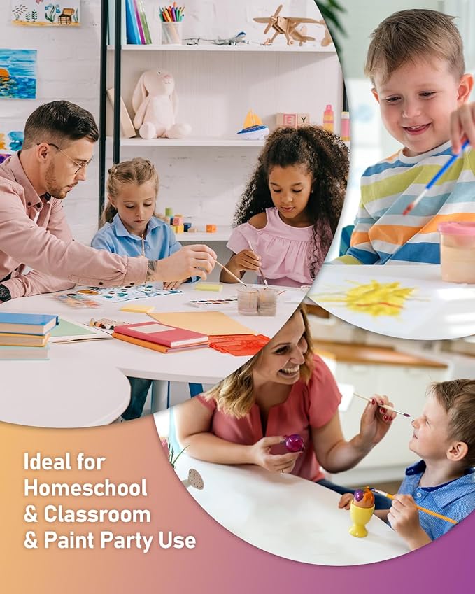 - ENDLESS FUN - This kids art paint holds strong on painting tools like sponges or brushes and dries to a matte finish, perfect for work on paper, cardboard or stone. Ideal for kids on birthdays, Halloween, Christmas, Easter, Children’s Day and holidays. This paint set comes with a color wheel for color exploration and learning.