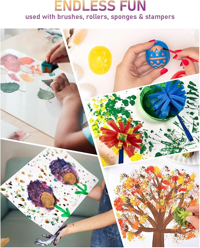 - SAFE & NON TOXIC for All Ages - Made with a skin-safe formula that meets ASTM D-4236 standards. Safe for toddlers and young kids to use at home, or school—ideal for finger painting and creative painting