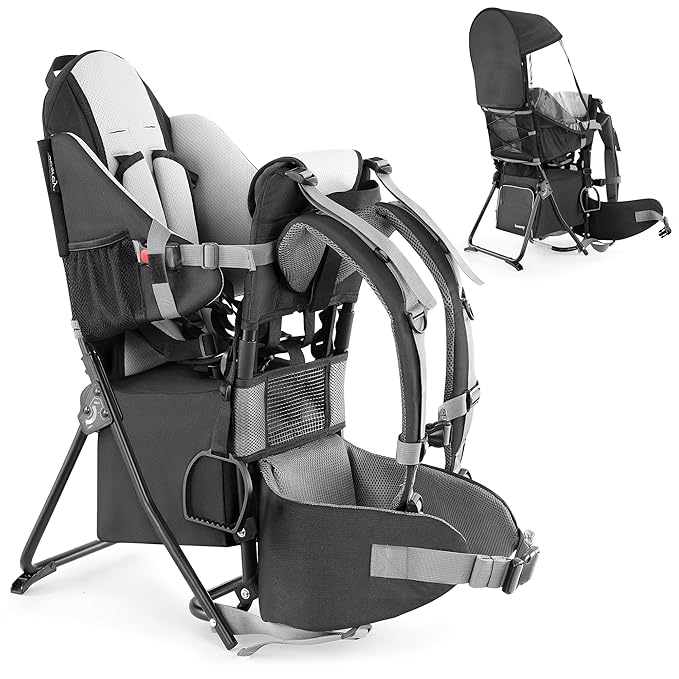 besrey Baby Backpack Carrier, Toddler Hiking Backpack with Safety 3-Height Seat, Adjustable Straps&Waist Belt, Foldable Frame Lightweight Large Capacity Child Carrier for Hiking (Black)