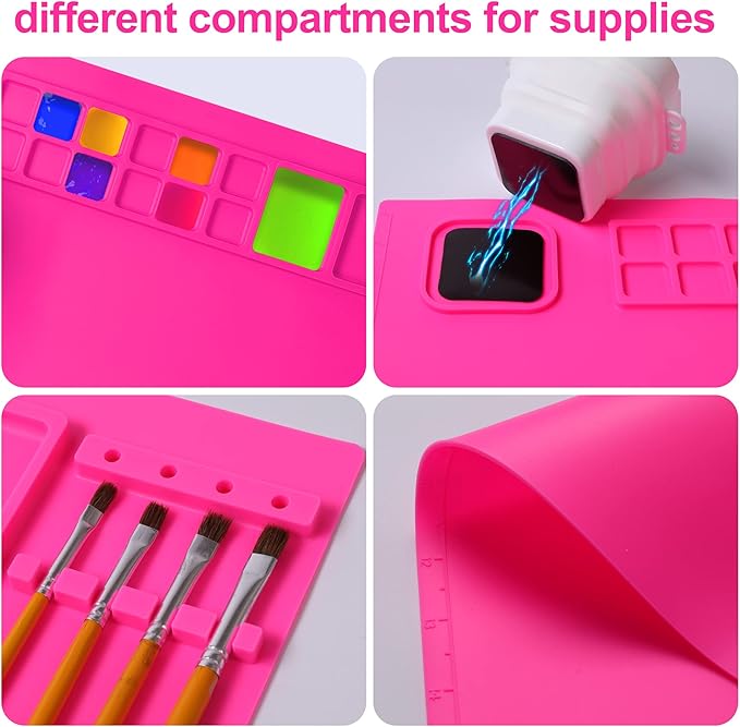 - [Made From Silicone] - Made of food-grade silicone. The silicone mat for all your arts and crafts is safe to use. It is waterproof, stain & heat-resistant, not easy to deform or tear up, and ideal for protecting surfaces from paint, heat tools, glue, and more.