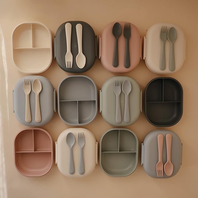 - Each lunchbox includes a matching Fork and Spoon utensil set that locks in place and stays clean with the removable divider.