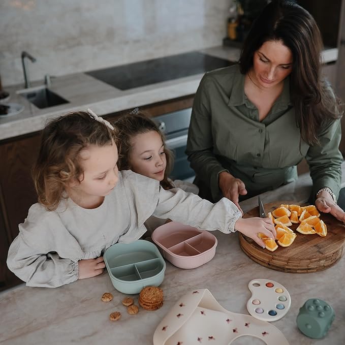 mushie Kids Bento Lunch Box | 3-Compartment & Removable Divider + Fork & Spoon Utensils | Great For Meals, School, Snacks On-the-Go | Dishwasher Safe (Blush)