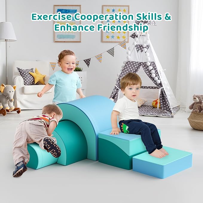 - 🎀【DIY Crawl And Climb Playset】The foam climbing blocks playset come with 5 different shaped blocks, so toddlers can create their own crawling paths. We believe it can develop children's creativity and problem-solving skills. At the same time, it can bring an interesting and challenging game experience to children
