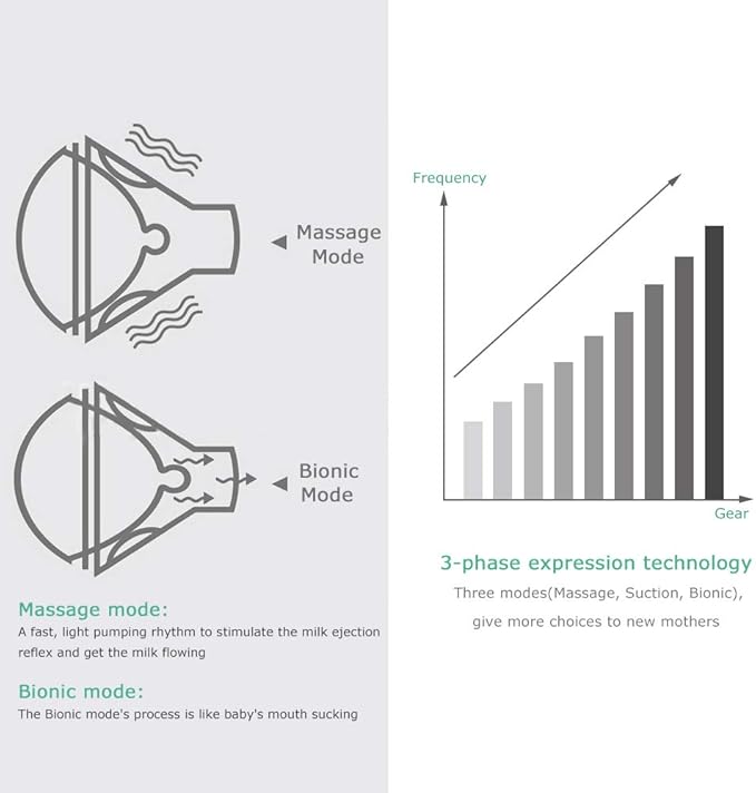 - 【High Efficiency & Easy to Use】Turn on the electric breast pump and automatically start a gentle pacing mode to stimulate milk flow. It pumps more milk in less time thanks to its 3-phase expression technology. Removable parts are dishwasher safe.