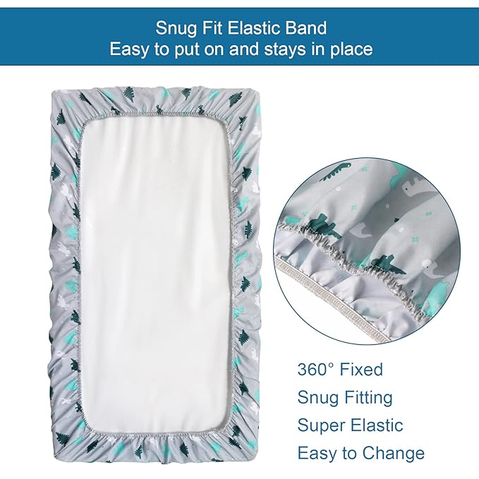 Graco Pack n Play Sheets - 4 Pack Mini Crib Sheets, Ultra Soft Mattress Compatible, Dinosaurs