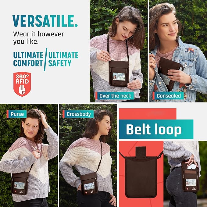 - Ultra-Slim and Comfortable Travel Neck Wallet: Innovative, breathable, moisture-resistant fabric for security and comfort during international travel. Includes new RFID blocking material for added protection.