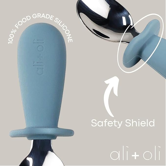 - ROUNDED SMOOTH EDGES: ensures safety, constructed of high-quality 316 stainless steel and food grade silicone handles are BPA, PVC, phthalate free like all Ali+Oli Products! These toddler utensils seamlessly help your little one transition to adult silverware with ease. Reusable easy grab fork and spoon for baby toddlers